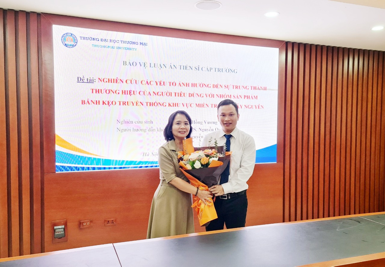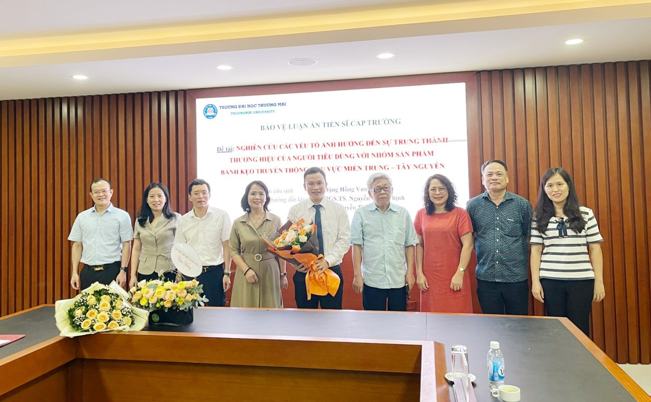 Chiều ngày 06/10/2021, Phòng Hội thảo số 1 nhà F, Trường Đại học Thương mại đã tổ chức Lễ bảo vệ luận án tiến sĩ cho nghiên cứu sinh Đặng Hồng Vương, chuyên ngành Kinh doanh thương mại (mã số 9340121 ), đề tài luận án “Nghiên cứu các yếu tố ảnh hưởng đến sự trung thành thương hiệu của người tiêu dùng với nhóm sản phẩm bánh kẹo truyền thống khu vực miền Trung – Tây Nguyên” với sự hướng dẫn khoa học của PGS.TS. Nguyễn Quốc Thịnh và TS. Nguyễn Thu Quỳnh