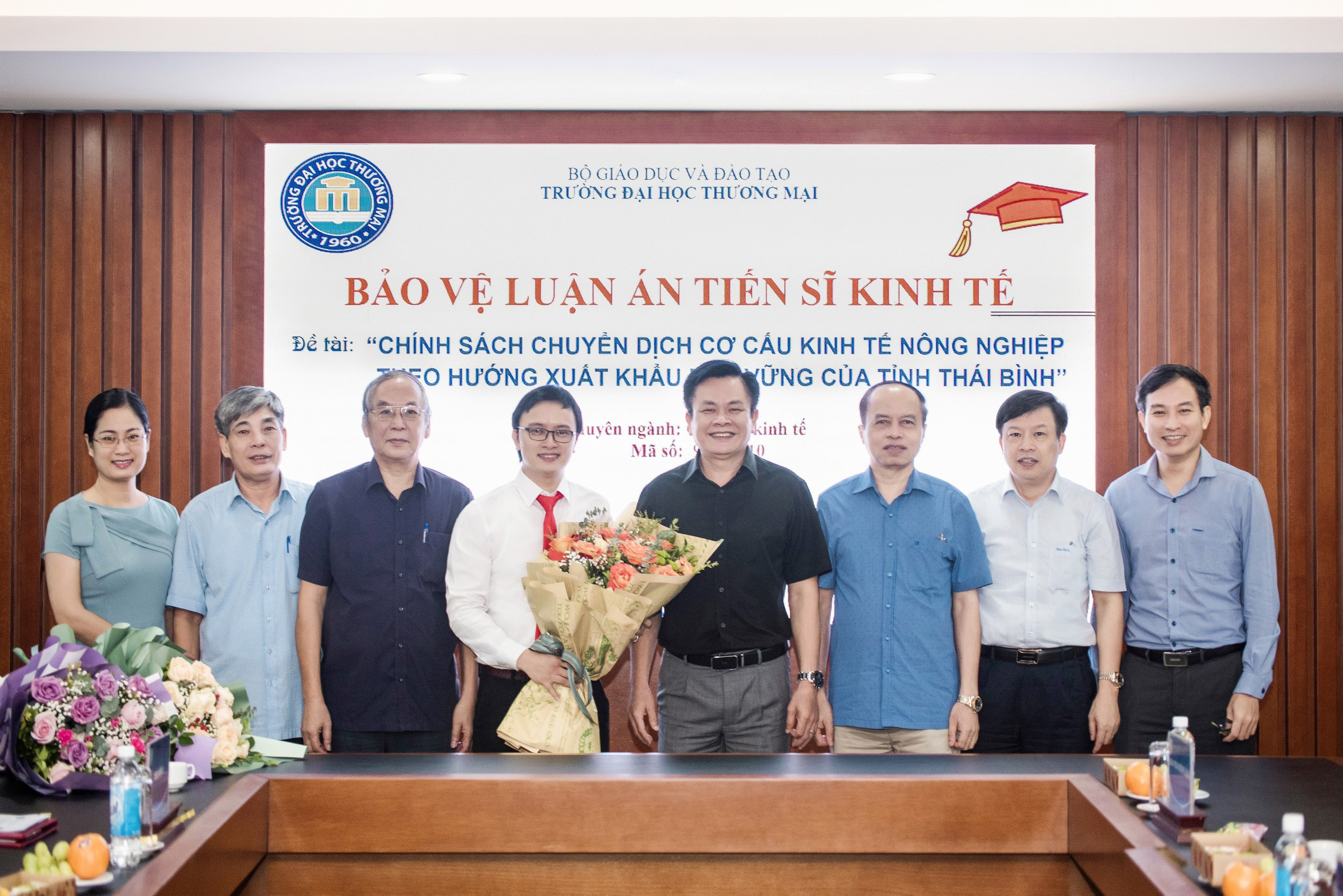 Sáng ngày 06/10/2021, tại phòng hội thảo số 1 tầng 6 nhà F, Trường Đại học Thương mại đã tổ chức Lễ bảo vệ luận án tiến sĩ cho nghiên cứu sinh Hà Xuân Bình, chuyên ngành Quản lý kinh tế (mã số 93.10.110), đề tài luận án “Chính sách chuyển dịch cơ cấu kinh tế nông nghiệp theo hướng xuất khẩu bền vững của Tỉnh Thái Bình” với sự hướng dẫn khoa học của PGS.TS. Hà Văn Sự và TS. Lê Thị Việt Nga
