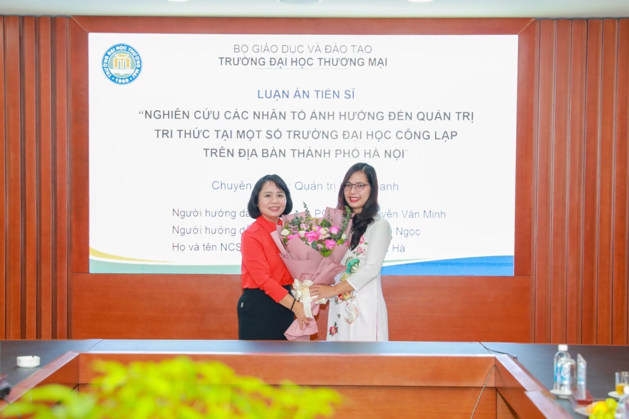 Trong niềm vui và xúc động, NCS Nguyễn Thị Thu Hà đã tri ân sự dìu dắt, chỉ bảo tận tình của tập thể giáo viên hướng dẫn, Lãnh đạo Trường Đại học Thương mại, Phòng Quản lý Sau Đại học, đồng nghiệp, bạn bè và đặc biệt là gia đình, nơi luôn là hậu phương, là nguồn động viên và cổ vũ lớn lao để nghiên cứu sinh có thể bảo vệ thành công luận án và đạt được học vị tiến sĩ như ngày hôm nay./.