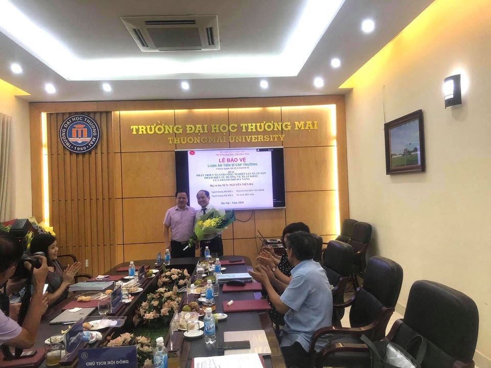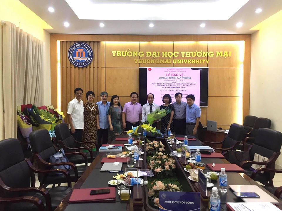 Chiều ngày 13/06/2020, tại phòng họp số 2 nhà I, Trường Đại học Thương mại đã tổ chức Lễ bảo vệ luận án tiến sĩ cho nghiên cứu sinh Nguyễn Tiến Đà, chuyên ngành Quản lý kinh tế (mã số 9340410), đề tài luận án “Phát triển ngành công nghiệp sản xuất sản phẩm điện tử hướng về xuất khẩu của thành phố Đà Nẵng” với sự hướng dẫn khoa học của PGS. TS Nguyễn Văn Minh và TS. Lưu Đức Hải.