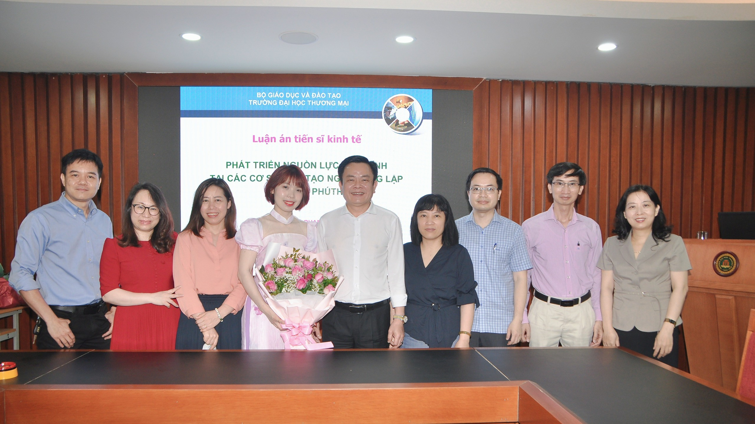 Sáng ngày 26/4/2022 tại Phòng Hội thảo số 1, tầng 6, nhà F, Trường Đại học Thương mại đã tổ chức Lễ bảo vệ luận án tiến sĩ cho nghiên cứu sinh Phạm Thu Hạnh, chuyên ngành Tài chính – Ngân hàng (mã số 934.02.01), đề tài luận án “Phát triển nguồn lực tài chính tại các cơ sở đào tạo nghề công lập của tỉnh Phú Thọ” với sự hướng dẫn khoa học của TS Vũ Xuân Dũng và PGS.TS Mai Thanh Lan