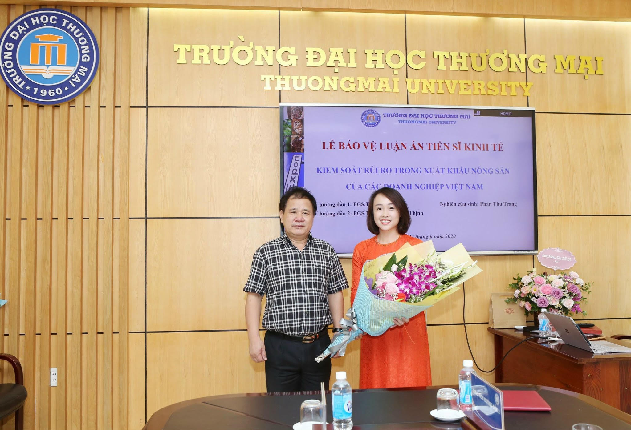 Sáng ngày 24/06/2020, tại phòng họp số 2 nhà I, Trường Đại học Thương mại đã tổ chức Lễ bảo vệ luận án tiến sĩ cho nghiên cứu sinh Phan Thu Trang, chuyên ngành Kinh doanh thương mại (mã số 9340121), đề tài luận án “Kiểm soát rủi ro trong xuất khẩu nông sản của các doanh nghiệp Việt Nam” với sự hướng dẫn khoa học của PGS.TS Doãn Kế Bôn và PGS,TS. Nguyễn Quốc Thịnh.