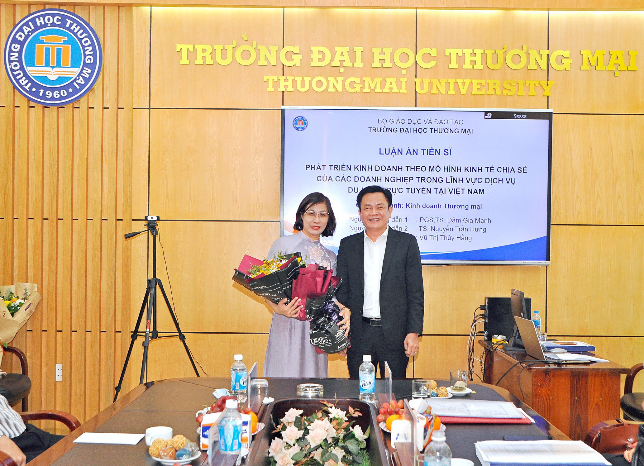 Chiều ngày 24/11/2021, tại phòng họp số 2 nhà I, Trường Đại học Thương mại đã tổ chức Lễ bảo vệ luận án tiến sĩ cho nghiên cứu sinh Vũ Thị Thúy Hằng, chuyên ngành Kinh doanh thương mại (mã số 934.01.21 ), đề tài luận án “Phát triển kinh doanh theo mô hình kinh tế chia sẻ của các doanh nghiệp trong lĩnh vực dịch vụ du lịch trực tuyến tại Việt Nam” với sự hướng dẫn khoa học của PGS.TS. Đàm Gia Mạnh và TS. Nguyễn Trần Hưng